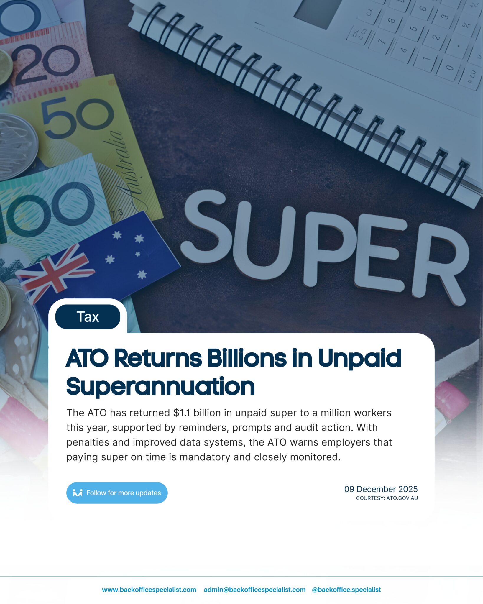 New ATO data shows $1.1 billion in unpaid super has been returned to almost one million employees this year. More than 200,000 reminders and prompts…